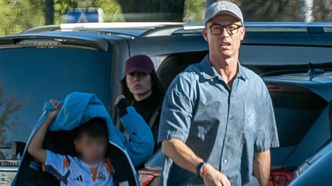 Acompañados por su hijo Mateo -mientras que Cristiano Jr, Eva, Alana y Bella Esmeralda se quedaron en casa- Georgina y Ronaldo tomaron un refrigerio en la terraza de una cafetería próxima a su mansión en La Finca, donde consiguieron pasar desaperdibidos para disfrutar de un rato entre amigos en el que no faltaron las risas y las confidencias.