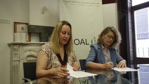El Palacio de Gaviria abrió este lunes sus puertas a la actual presidenta de la Asocación de Amigos del Patrimonio de León (Promonumenta), Marina Sánchez, que se dio cita con la presidenta de la delegación leonesa del Colegio Oficial de Arquitectos de León (Coal), María José González Lobato, para dar firma a un convenio de colaboración.