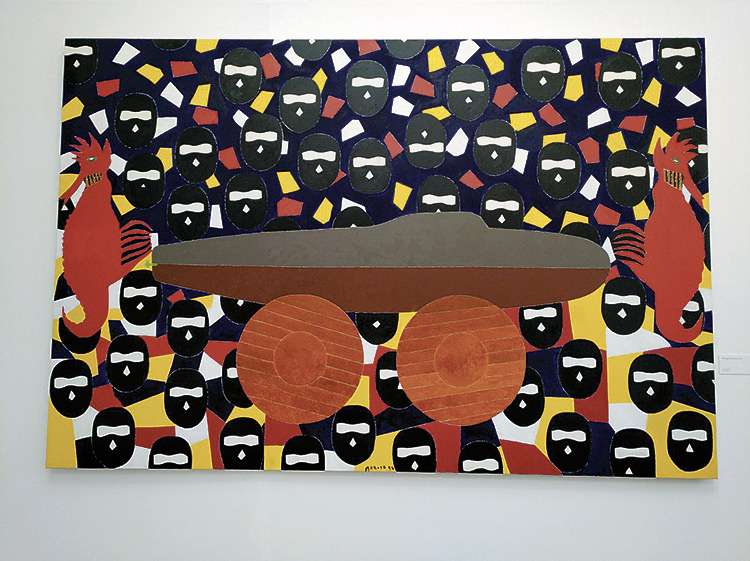 No estaba Arroyo pero estaba en todas las conversaciones. No estaba Arroyo pero estaban sus amigos, su viuda Isabel Azcárate; la comisaria de la muestra —Fabianne Rocó—; la pianista Rosa Torres Pardo, que le daba nombre a los encuentros que se celebraban en Robles de Laciana; el director del Teatro Nacional y muchos nombres de la cultura española junto a amigos llegados desde Laciana y León: el pintor Lolo Zapico; Arsénico Pérez, hijo del escultor Jonás Pérez, Luis García, técnico del departamento de Arte del Instituto Leonés de Cultura. Alrededor de 500 personas que acudieron a la llamada de la memoria de Eduardo Arroyo y la exposición que se inauguraba, con el mismo título que la última obra suya: ‘El buque fantasma’, en la que trabajó en su taller de Robles de Laciana hasta el último día, según recordaba su viuda, Isabel Azcárate, que «cada día se levantaba y se ponía a pintar, que era su forma de seguir vivo y no pensar en cómo su salud se iba deteriorando de manera irreversible».En los corrillos de la visita a la exposición se recordó la figura deArroyo y, entre los leoneses, su especial vinculación con esta tierra, con Laciana, donde quiso que reposaran sus restos para siempre. La viuda confesó que la intención de la familia seguía siendo que se hiciera realidad «lo que era un deseo de Eduardo, crear la gran biblioteca de Arroyo en Laciana», aunque no está muy claro todavía cómo llevar adelante el proyecto porque lo único claro es que «él no quería una fundación». La inauguración de El buque fantasma se convirtió en la gran noticia cultural del fin de semana en Madrid. Todos los medios nacionales se hicieron eco de ella. Natividad Pulido cuenta en ABC que Arroyo dejó «dos cuadros inacabados. En su estudio de Madrid quedó en el caballete un lienzo que iba a titular ‘Tres visitantes en la cocina de Agatha Christie’ Era tal su pasión por Agatha Christie que la tercera parte de su autobiografía, que también verá la luz póstumamente, lleva por título ‘Diez negritos’. En su estudio leonés empezó en agosto otro cuadro: «La bella y la bestia». Tan solo le dio tiempo a pintar en una esquina del lienzo la figura de Lenin. Pero quedaron sin retratar Marx, Stalin, Mao y el león que debía centrar la composición».