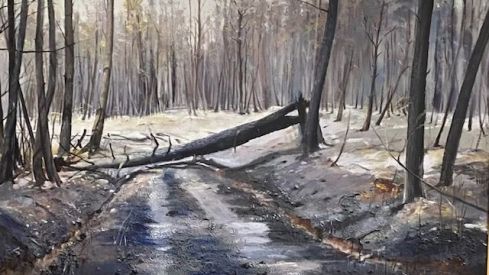 La cultura en este caso, la obra de un artista plástico vulnerable a lo que ocurre a su alrededor y una serie de destacados escritores se unen para ayudar a concienciarnos sobre la protección de la naturaleza. El pintor Rosendo García Ramos, Sendo (1948 – 2022), especialmente sensibilizado tras los continuados incendios en los entornos de los bosques y pueblos del Monte Teleno, trabajó durante meses en una serie pictórica que tiene como referencias los desolados paisajes tras el fuego. «Un paisaje siniestro. Los troncos calcinados y desnudos de los árboles, una colmena solitaria rodeada de cenizas, caminos desaparecidos en medio de lo que fueron montes de encinas, pinares o robledales», indican los organizadores.