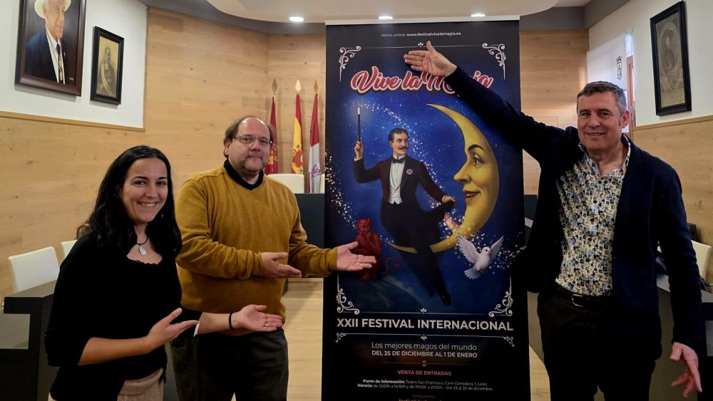 La Bañeza volverá a vivir la magia por todo lo alto durante las fechas navideñas. El Salón de Plenos del Ayuntamiento bañezano acogió este miércoles la presentación oficial del XXII Festival Internacional Vive la Magia, una cita cultural ya consolidada que regresará a La Bañeza del 26 al 29 de diciembre con seis actuaciones coincidiendo con la cercanía de las fiestas navideñas para aportar ilusión y entretenimiento a público de todas las edades.