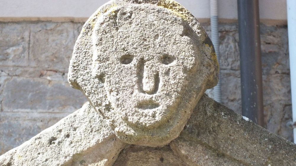 Paseando por Quintana, todo es una evocación de su antiguo esplendor. Según manifestó acertadamente nuestro amigo e improvisado guía Ovidio Molinero es un museo al aire libre formado por piedras reutilizadas aquí y allá. Nos detuvimos ante la fuente de la plaza, coronada por la cabeza de un ídolo, cabeza y fuente han sido trasladadas desde el abandonado monasterio de Santa Leocadia. Casi desfigurado por el tiempo, desde la pared de una casa nos observa la efigie de otro ídolo, que logró salvarse de la capa de cemento que le iba a recubrir ¿para no asustar a los visitantes? Llegamos ante otro ídolo que a mi se me antojó diabólico con sus largos cuernos. Nuestro amigo nos pidió que lo miráramos con respeto, pues era un dios local de la guerra, portando una corona de encina. Dejamos para otra ocasión ver pequeños objetos procedente de los castros, un aro de bronce, varias pesas de barro o pondus, moldes para hacer anillos o un crisol de piedra para verter líquido fundido. La rudeza de estos dioses y su simplicidad denotan una civilización a su medida, que retratan a los antiguos pobladores, los pemeiobrigenses de raza susarra(cuando lo pronunciéis varias veces, será tan fácil decirlo como "supercalifragilistico...") Pemeiobriga es el centro del valle, lugar de reunión o concejo de los representantes de las cinco torcas, castros o fortificaciones que lo rodean. Ya explotaban minerales, en las montañas que ahora se ofrecen ante nuestros ojos, cuando fueron vencidos en la batalla del Era, por los gigurros galaicos, venidos de Rubiá y Montefurado espoleados por los romanos. En la Peña del Era, junto al río que allí nace, está el «Teso de los griegos» (ya conocéis su significado de obra de ingeniería hidráulica) que indica la causa de la contienda: la avidez romana por el preciado metal. El imperio romano ofreció ganancias a los gigurros y las tierras de los pemeiobrigenses, hasta que el divino Augusto en el Edicto de Narbona Martio del año 15 antes de Cristo les permitió compartir de nuevo sus tierras con los vencedores, por su probada lealtad. El texto de este documento grabado en una placa de cobre fue descubierto por los niños del famoso programa de TVE ‘Mision rescate’ ayudados por sus maestros. Lo recuperaron para la historia y puede contemplarse en el museo de León: «Conocí que los castreños pemeiobrigenses del pueblo susarro... permanecían en el cumplimiento de las ordenanzas,por todo ello concedo protección para siempre».
