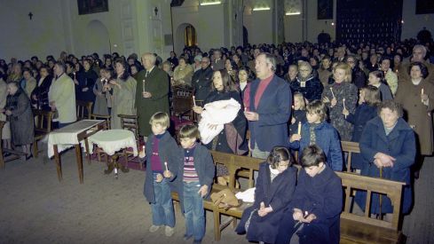 Tiene este rincón de los lunes —esa mirada a los años setenta a través de las impagables imágenes del archivo de Fernando Rubio— una evidente vinculación con el calendario y sus celebraciones, aunque no siempre. Avisa Rubio de que esta semana es inevitable... «Dicta la casualidad o causalidad que este lunes coincida con la Festividad de la Virgen de Candelaria o de Las Candelas. En mi archivo conservo estas, para mí, bellas y emotivas imágenes y en mi memoria un especial recuerdo de esa celebración en Santa Marina, con el párroco don José María oficiando, ayudado por el padre Abel del Río y el padre Cayetano».