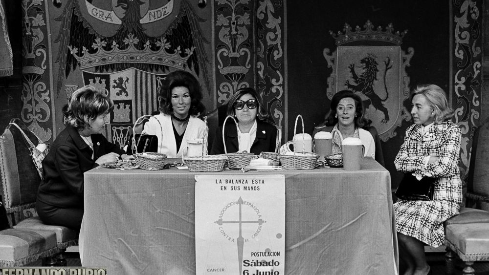 En los años 70 ya eran diversas las cuestaciones solidarias, evidentemente marcadas por los tiempos, y por las imágenes de Fernando Rubio van desfilando la mayoría de ellas, que prácticamente siempre se desarrollaban en las calles: la llamada de “la banderita” era para la Cruz Roja, la más clásica y popular, sus voluntarios y voluntarias —las famosas chicas de la Cruz Roja— con la hucha de metal eran un símbolo de asistencia inmediata; también fue ganando presencia al mismo ritmo que crecía el pánico ante esta enfermedad las cuestaciones de la Lucha contra el Cáncer, buscando “financiar la investigación y el apoyo a pacientes y familiares, una ayuda crucial ante la falta de recursos sanitarios especializados”.