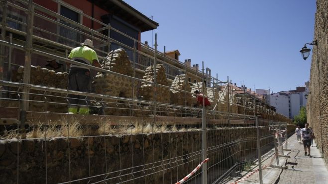 Es precisamente en el antemuro ubicado en ese tramo donde, desde hace varias semanas, se trabaja en aras de su reparación. Considerada Bien de Interés Cultural, la Cerca Medieval de la capital provincial se acerca así a su retirada de la citada lista. Todo a merced de unas tareas que continúan con la estela que en diciembre del año pasado dotó al pavimento de la fortaleza de 38 nuevas luminarias en una intervención del Ayuntamiento de León que contó con un presupuesto de 94.366 euros financiado por la Junta de Castilla y León.