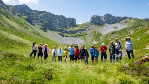 Antes de llegar a ese límite se desciende al arroyo para cruzarlo sobre unas piedras y comenzar a subir por los montes del otro lado. En la primera parte se pueden ver zonas con pequeñas lagunas que son cada vez más reducidas según va pasando el calor del verano. Son zonas de turbera muy importantes en este entorno como explica Rodrigo: «Le prestamos muchísima atención a las turberas porque se han formado en depresiones producidas por el propio glaciar y en su interior los musgos del género sphagnum se han encargado de ir recopilando la información sedimentaria de su entorno de manera muy ordenada, lo cual incluye los granos de polen de la vegetación de los últimos milenios. Eso permite hacer un estudio y conseguir una reconstrucción muy fiel de cómo ha sido la vegetación en el pasado y como ha habido sustituciones de una especies dominantes por otras y con ello averiguar cuáles han sido las causas».