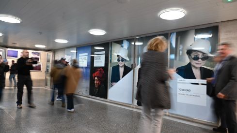 La presencia de Ono en León no se limita al Musac. Varias de sus consignas pacifistas y participativas se extienden por la ciudad a través de vallas publicitarias y en las coloridas cristaleras del museo, con palabras y frases como ‘Sueña’, ‘Vuela’, ‘Imagina la paz’ y ‘Respira’ que invitan a la acción y al pensamiento. Además, su obra ‘Pensamientos de cuarto de baño’ (1968) se ha instalado en aseos de diferentes establecimientos, siguiendo la línea de su arte participativo que busca involucrar al público en espacios inesperados.