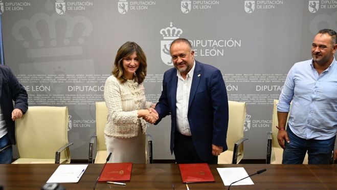 El Palacio de los Guzmanes abrió este jueves sus puertas a la rectora de la Universidad de León, Nuria González, que se dio cita con el presidente de la Diputación de León, Gerardo Álvarez Courel, y el diputado y vicepresidente del Instituto Leonés de Cultura, Emilio Martínez, para dar firma a un convenio de colaboración en materia de arqueología entre la ULE y el ILC. "Este convenio vuelve a demostrar que la colaboración entre instituciones es la clave para cumplir el objetivo de ofrecer mejoras a la sociedad que servimos", expresó Courel sobre una firma que permitirá "que ambas partes salgan reforzadas".