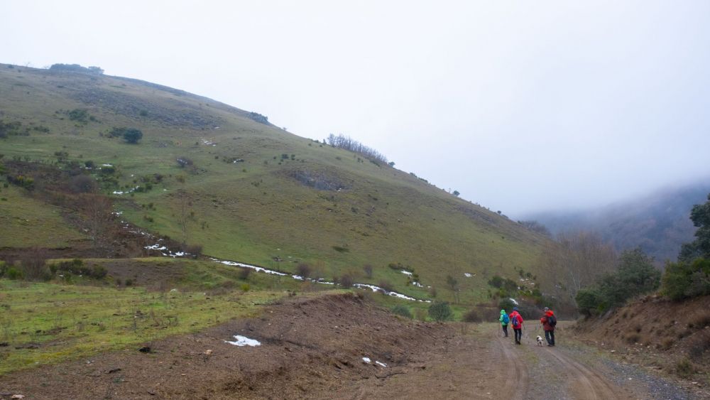 Al final se sube a la parte alta entrando en la zona de matorral y algo de roble con diferentes trochas de ganado, tratando de seguir alguna de ellas, aunque no se va a ascender directamente, sino que se mantiene la curva de nivel pasando dos arroyos para lo que se debe subir y, en algún momento, bajar un poco.