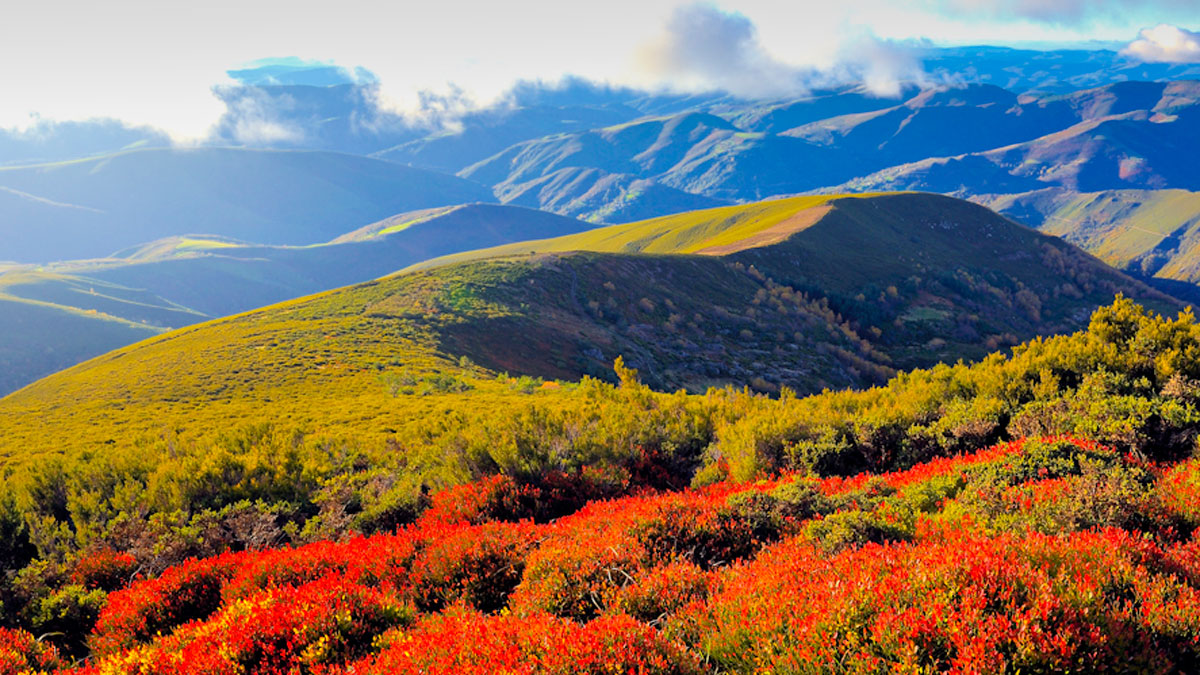 Para poder llegar al final deberemos empezar a andar cuanto antes puesto que hoy tenemos que caminar más de 37 kilómetros. Después de el sorprenden visita a Campo del Agua tomaremos el Camino Natural de la Mirada Circular ascendiendo hasta un collado con un frondoso robledal, bajando después hasta rebasar un arroyo que serpentea entre robles y acebos. Tras pasar un cruce, el camino inicia un nuevo ascenso a través de un denso bosque de robles y abedules en el que también hay acebos y serbales. Más adelante, la senda abandona el bosque. Tras discurrir junto a un área recreativa, el viajero podrá observar en el fondo del valle el pueblo de Porcarizas. Merece la pena dejar de lado nuestro camino por un momento para adentrarnos en el bosque y disfrutar del silencio y la soledad.No tengas miedo siempre estaremos protegidos y vigilados por la atenta mirada del pico Tres Obispos, punto en el que convergen los límites administrativos de Asturias, Galicia y Castilla y León. Más adelante, sin desviarnos de la senda, nos encontraremos con otro cruce; por un lado veremos el pueblo de Teixeira, en el que podríamos visitar su maravillosa iglesia del siglo VXII y parar a reposar en la “Cantina de Teixeira” donde Mari y Luisma nos agasajaran con una comida seguro que inolvidable. Al volver a la ruta merece la pena que te detengas en la una de las fuentes más famosas de la zona, la fuente de los cinco caños, localmente conocida por sus cualidades curativas.El camino pasa muy cerquita de las “Alzadas de Villar de Acero” donde el proyecto de La Mirada Circular” rehabilitó una de sus cabañas.Os preguntaréis que eso de una Alzada. Al igual que los vecinos de Aira da Pedra que en verano llevaban el ganado a Campo del Agua para aprovechar sus pastos frescos durante el estío y en invierno volvían al valle, los aldeanos de Villar de Acero lo hacen aquí, en su querida Alzada.De nuevo en el camino, continuamos por la senda que nos conduce a la localidad de Canteixeira. A lo largo de este recorrido, podremos disfrutar de otro de los bosques más emblemáticos de nuestra comarca, la Baliña, un robledal con algunos ejemplares varias veces centenarios. Con la llegada a Canteixeira, podremos visitar una de las pallozas mejor conservadas de la zona, es a su vez una casa rural, y un pequeño y acogedor restaurante donde se pueden comer también esquistos platos de la gastronomía local. No te olvides de hacer el pequeño desvío que te lleva la fervenza o c