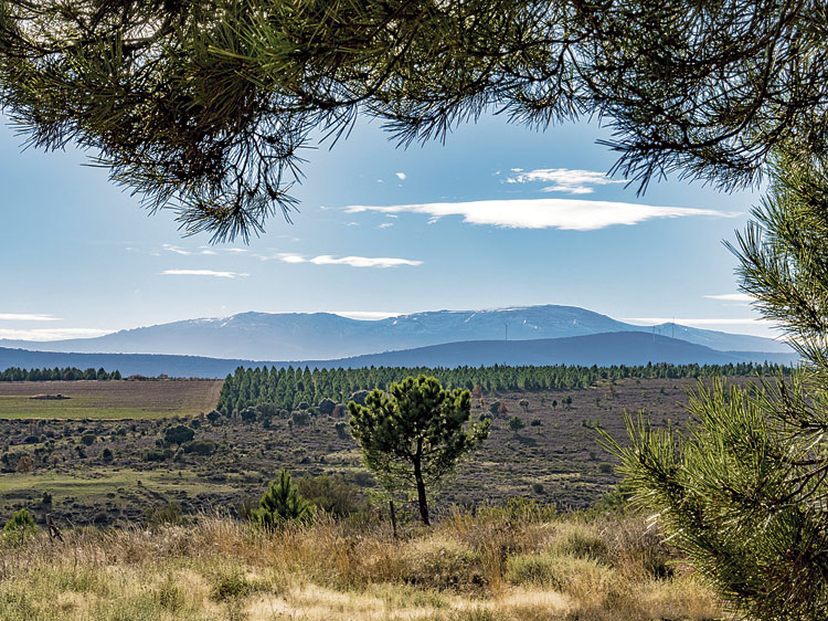 Más tarde hay algún que otro roble y la zona del río se encuentra algo encharcada, aunque hay más fuentes en el camino: la de las Gatiñas, poco después del cruce, y bastante más lejos las del Arenal y de la Salud. Más tarde comienzan a alternarse las encinas con los pinos, hasta que todo se transforma en pinares.Se llega a una zona rocosa con el desfiladero de Entrepeñas, donde la ruta puede hacerse por abajo, con terreno encharcado cuando hay abundancia de agua o bien por la parte de arriba siguiendo por el camino con un mínimo tramo de fuerte pendiente y luego se puede seguir por las rocas o por el camino, para llegar a un mogote de piedras desde donde se ve el pequeño desfiladero de Entrepeñas y al fondo la silueta del Teleno.