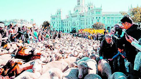 Llegó el día, el tercer domingo de octubre (generalmente). Los encargados de ‘la escaleta’ de los informativos de todas las cadenas saben que tienen resuelta la imagen de apertura, llamativa imagen, rebaños de ovejas trashumantes dejan las cañadas más solitarias que recorren todo el país para hacer valer su derecho histórico de volver a atravesar el centro de la capital de España, un derecho que se ha vuelto a reivindicar desde hace 32 años, justo los que llevan protagonizando el telediario.