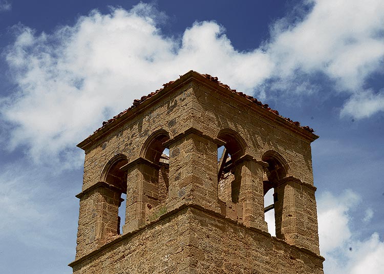 María acaba de quitar las hierbas de la puerta de casa para dejarla impecable con un brío y una vitalidad que no son testigos de su edad. Jesús vuelve a echarle mano a la máquina para acabar la reparación y Félix va dejando una nube de polvo al alejarse. El sol calienta como solo hace allí donde el cereal de secano encuentra el mejor terreno al que arraigarse como también le pasa a la maleza que brota del olvido de las casas cerradas. En el retrovisor se aleja la iglesia de San Pedro de Valdefuentes donde en su interior reposa el patrón, San Isidoro. Espera un milagro: salir del abandono.