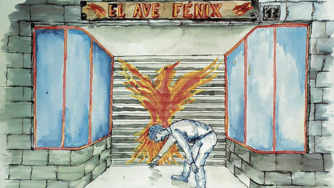 Un año más tarde, Eugenio se levantó y como cada mañana fue a encender el letrero de neón de su famosa tienda, «El Ave Fénix».