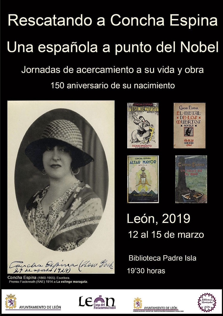 Después de la inauguración, el pasado jueves, de la exposición temporal ‘Un año inspiradas por Concha Espina’, que cuenta con las obras de 22 artistas y será visitable hasta el día 28 de este mes en el Auditorio Ciudad de León, le toca el turno a otra propuesta, de carácter divulgativo, que dará a conocer más de cerca la figura de esta emblemática escritora, vinculada estrechamente a la provincia leonesa y más concretamente a la comarca de la Maragatería, a la que dedicó su publicación ‘La esfinge maragata’, una de sus obras cumbre, ganadora de diversos reconocimientos. Se trata de unas jornadas tituladas ‘Rescatando a Concha Espina. Una española a punto del Nobel’, integradas por una serie de charlas y coloquios que se llevarán a cabo del 12 al 15 en la biblioteca de Padre Isla, a partir de las 19:30 horas.