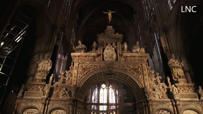 Alabastro, madera y piedra conforman una de las múltiples joyas que esconde en su interior la Catedral de León. Una joya que ahora saluda a los visitantes con una iluminación que arroja luz en la entrada tenue del templo y sobre cuyos materiales se ha llevado a cabo un «profundo» trabajo de restauración, dado que «la patología que había era seria». Así lo expresa el director del Museo Catedralicio-Diocesano de León e historiador del arte, Máximo Gómez Rascón.