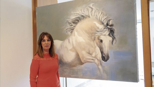 Sus obras en esta ocasión son óleo sobre lienzo y tabla, aunque también domina la acuarela a la perfección. Su hija continúa comentando la obra de su madre: «sus cuadros son escenas que reflejan alma, vida, esencia, temas cotidianos, el perro, el torero, el caballo tienen una fuerza que ella capta, y cuando ves el cuadro y te pones ante él sientes esa emoción que ella ha querido impregnar a esa bailarina, al Quijote o a cualquiera de los temas que pinta. Pinta la ciudad, la Naturaleza, cosas que emocionan y atraen porque están en el alma de las personas. Su pintura es una pintura con alma».