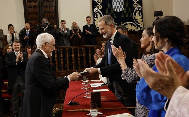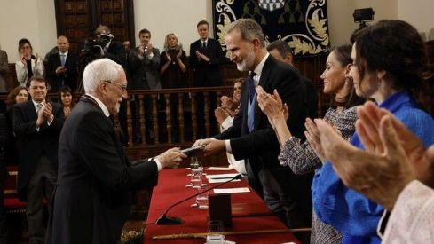 Luis Mateo Díez ha recogido este martes el Premio Cervantes 2023, el máximo galardón de las letras en español. El Paraninfo de la Universidad de Alcalá de Henares ha acogido la ceremonia de entrega en un acto en el que han estado presentes los reyes de España, el presidente del Gobierno, Pedro Sánchez, el ministro de Cultura, Ernest Urtasun y la presidenta de la Comunidad de Madrid, Isabel Díaz Ayuso, entre otras autoridades. Además, el escritor leonés ha estado acompañado por todos sus hermanos, sus hijos y también sus nietos.