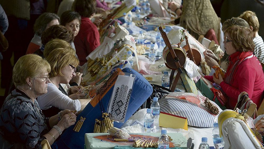 Mejor así. Este domingo Hospital fue la capital del encaje de bolillos, con artesanas (sólo había un varón, un joven de 18 años) llegadas desde diversos puntos de Galicia, Palencia, Valladolid (con la participante más joven) o Asturias.