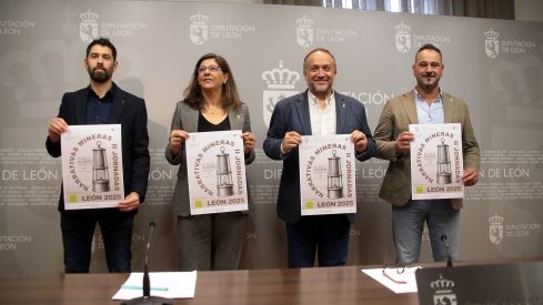 El presidente de la Diputación de León, Gerardo Álvarez Courel asistió a la presentación del programa de las jornadas, acompañado del diputado de Cultura, Arte y Patrimonio, Emilio Martínez, la vicerrectora de Inclusión, Igualdad y Proyección Social, Raquel Domínguez; y Javier Fernández, profesor titular del Área de Prospección y e Investigación Minera de la Universidad de León presentan las ‘II Jornadas Narrativas Mineras. Voces, Paisajes e Identidad’.