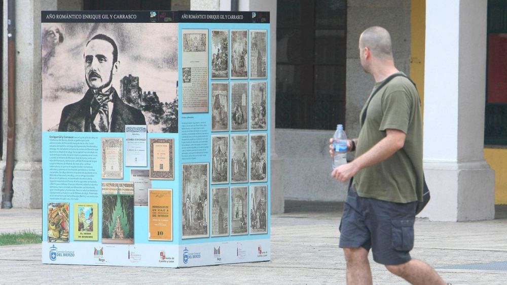 La exposición itinerante ‘Los escenarios de Enrique Gil y Carrasco’ llega a la plaza del Ayuntamiento de Ponferrada, que se convierte en el segundo escenario tras abandonar Villafranca del Bierzo, donde la muestra fue inaugurada a mediados del mes pasado. Un nuevo emplazamiento "simbólico", frente a la casa de la familia Gil y Carrasco, donde el escritor se trasladó a vivir en 1823 desde su villa natal.