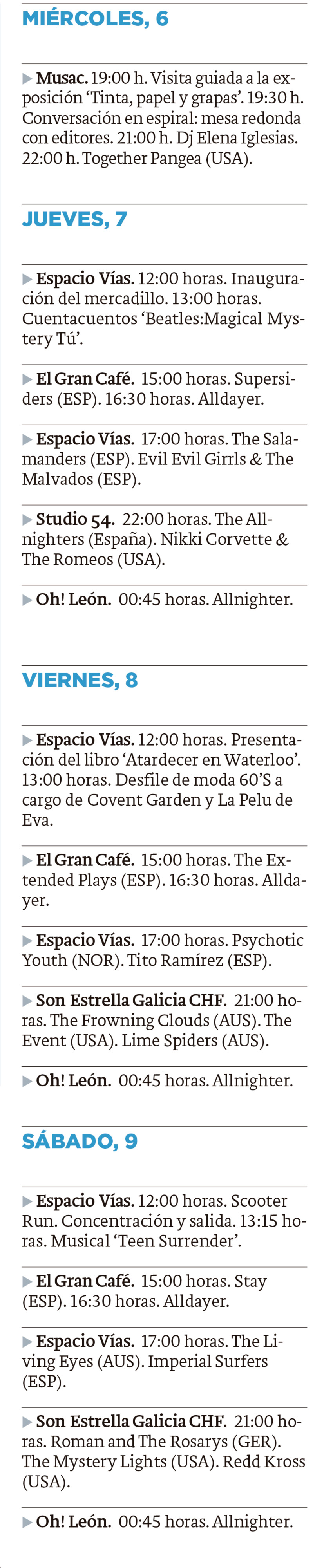 León se pone retro con el Purple Weekend y La Nueva Crónica te invita a disfrutar de ello. Desde el jueves 7 hasta el sábado 9, la capital leonesa estará inmersa en la 29 edición del Festival Internacional Purple Weekend de León, coincidiendo con el Puente de la Constitución, como viene siendo tradición en los últimos años por parte de uno de los festivales urbanos más importantes que se celebran en territorio nacional y que cuenta cada vez con mayor proyección internacional, dada la categoría de las bandas que en él participan y que este año proceden de países como EEUU, Australia, Alemania, Suecia y España.