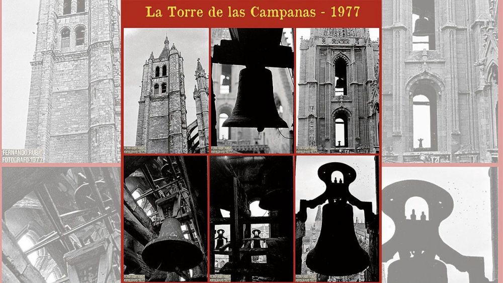 No podían permanecer ajenas al archivo de Fernando Rubio. Y, hablando de León, mucho menos las de la Catedral. Les asigna el fotógrafo una definición muy gráfica: «El tañer de las campanas era el reloj de nuestros abuelos». Y completa la descripción: «Su toque marcaba las horas. Las campanas eran la alarma cuando había un peligro. Las campanas eran el despertador y su toque, también, ponía fin al día. Su repicar reunía a los vecinos a las asambleas y anunciaba las fiestas y los entierros». Para rematarlas con un precioso poema de Rosalía de Castro.