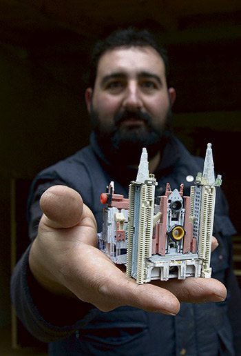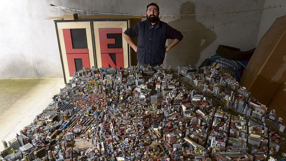 El nuevo trabajo, el más ambicioso suyo, se llama ‘León’, «no he sido muy original, lo sé», pero bien podría llamarse ‘Legio VII Sebas’ pues no se trata de la típica maqueta «exacta» sino la visión que el artista de Castrotierra tiene de la capital y el resultado que obtiene después al fotografiarlo una y otra vez con los cielos de su tierra como fondo. «Son nueve meses de trabajo, un parto completo para dar a luz a León, para este proyecto de poco más de dos metros de lado. Me he tomado licencias, como dejar bastante limpio el entorno de la Catedral, para que sea ella la que domina el espacio. En los barrios nuevos me he permitido el lujo de acabarlos según proyectos existentes o noticias de prensa y hasta he soterrado el tren, que a mi me sale mucho más barato que al ministerio de Fomento».