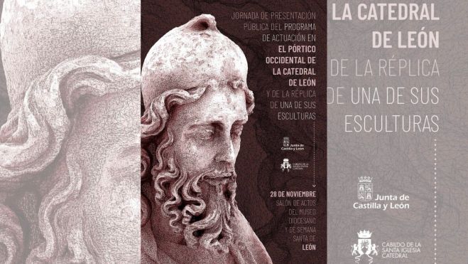 La Catedral de León acoge este viernes una jornada de presentación pública del programa de actuación en el pórtico occidental y de la réplica de una de sus esculturas; un encuentro que reunirá a especialistas de referencia en historia del arte, restauración y digitalización patrimonial. La sesión, que se celebrará en el Salón de Actos del Museo Diocesano y de Semana Santa, será inaugurada por el consejero de Cultura, Turismo y Deporte, Gonzalo Santonja, y el presidente del Cabildo, Florentino Alonso.