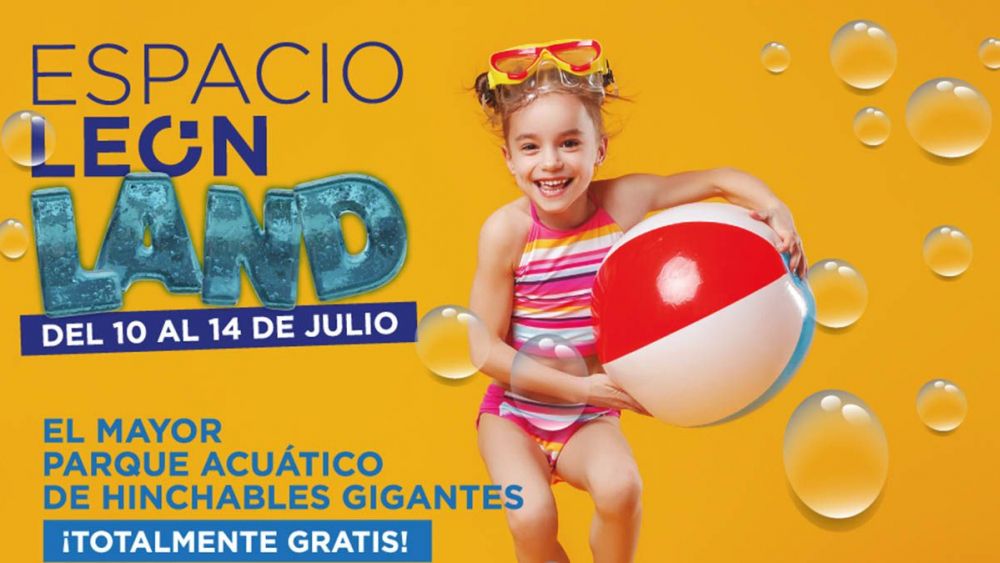 Cinco espectaculares atracciones hinchables acuáticas con toboganes de hasta 14 metros de altura y espectáculos diarios :