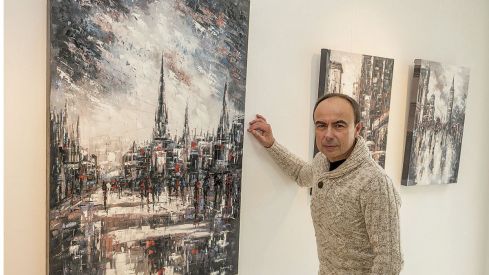 Las pinturas de José Domínguez se pueden veren la sala Alemi, en la plaza de San Marcelo hasta finales de este mes. Hay imágenes de muchas ciudades y alguna de la ciudad de León con su peculiar estilo cargado de valentía.