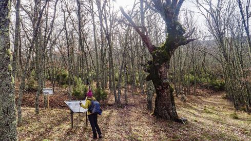 En el camino se van a ver dos aspectos interesantes del paisaje, por un lado el robledal de la Lomba, un bosque con robles jóvenes en su inicio y con mayor antigüedad a lo largo de la ruta, lo que puede representar en verano frescor cuando llegan los calores. El otro aspecto a tener en cuenta es la existencia de minerales como el cobre que fue extraído durante los últimos años del siglo XIX y los primeros de XX por la empresa inglesa: The Rio Negro Mina Ltd., que tenía una infraestructura de pozos, escombreras, canales y otros medios de transporte para separar el mineral y llevarlo a su tierra. Aún se pueden ver en las escombreras restos de malaquita.
