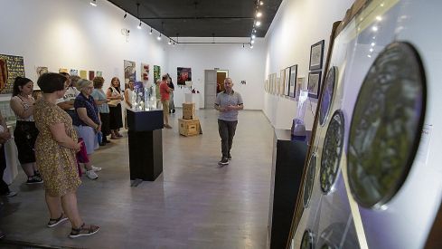 Las docentes Rebeca González Puente y Cristina Fernández Álvarez, de los ciclos de Vidriera Artística y Pintura sobre Vidrio, acompañaron al alumnado durante la inauguración, que sirvió como pretexto para charlar sobre el vidrio como herramienta artística. «En primero del superior (de Vidriera Artística) empiezan con la técnica Tiffany para conocer cómo se trabaja el vidrio, cómo se comporta al cortarlo y demás», explicaron sobre una expresión que parece estar cada día más en boga. «Es un material que tiene su misterio: es muy versátil y permite generar desde lo más clásico hasta obras mucho más contemporáneas», consideraron: «La verdad es que el vidrio engancha».