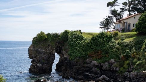 Subiendo un poco más se ve bien el corte del acantilado con varios árboles agarrados a las peñas de la costa. Más arriba se toma un camino que sale al asfalto, aunque se deja poco después saltando un murete para continuar por el sendero al lado del mar con unas vistas extraordinarias. Este sendero en época de lluvia ha de realizarse con cuidado para no irse hacia las rocas en zonas de barro.