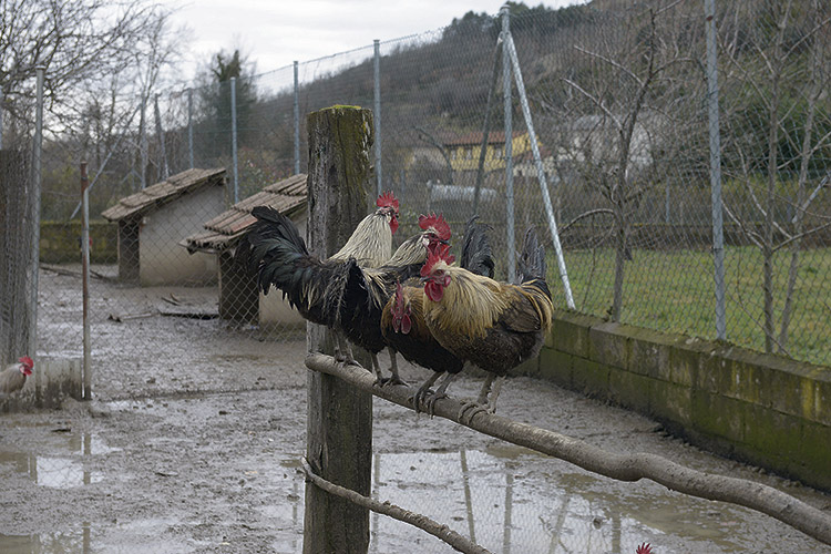 Javier Escanciano guarda en su memoria la pasión por la pesca, los gallos, las plumas o los mastines fruto de sus estancias en León y «la lectura de unlibro de referencia para los pescadores, el de Rafael del Pozo —‘Moscas para la pesca’— y para mí era algo mítico lo de los gallos de León, los mastines, la pesca... pero jamás pensé dedicarme a ello, ni en sueños, aunque sí me apetecía tener unos gallos pero ¿de dónde los sacaba?».El azar o el destino cruzó sus caminos. Tomás confesaba en alguna grabación su cansancio, sus ganas de retirarse y en la vida de Javier pasaban cosas: «Me metí en la cuarentena, comenzaba como la segunda fase de mi vida, y a su vez empecé a sentirme mal en la ciudad, con tanto asfalto, tanta gente; y Tatiana comenzó a sufrir de faringitis, falleció mi suegra y dijimos es el momento... Aquí estamos».No fue tan sencillo pues Tomás Gil tenía muy avanzadas las negociaciones con unos americanos. «Hubo que pelearlo, romper contratos, pero yo estaba decidido», explica Javier Escanciano, quien recuerda que pensaba: «no puede ser que dejemos perderse los gallos de León en León, que se vayan. No quiero que se vea como algo extraordinario, yo sólo soy uno más en la cadena por mantener un legado, una calidad genética que, en el caso de Tomás, es extraordinaria, lo que hace que sea una gran responsabilidad para mí, lograr que no se rompa la cadena en mí, precisamente. Creo que si algo de mérito tengo es que ahora podíamos estar llorando la pérdida de una parte muy importante del gallo de León y no se ha consumado».Es su forma de entender este oficio o la tradición, que explica con la otra parte de la granja, los mastines. «Siempre fue un sueño tener mastines y ahora los tengo; me sirven para cuidar la granja y para disfrutar, estos tres cachorros me los han regalado y cuando traigan camadas yo también los regalaré, así es la tradición».Tampoco se han acabado con la compra los ‘contratiempos’ para Javier Escanciano. En el horizonte se asoma una ley —la que acabó de desmoralizar a Tomás— que impedirá mantener a Escanciano la granja en el mismo lugar. «Creo que entra en vigor en un par de meses y tenemos que sacar la explotación fuera del casco urbano y otras condiciones, creo que le ocurre lo mismo a otros criadores de la comarca... es increíble que ocurra algo así pero...».Pero los gallos de Tomás se van a Boñar, ya ha comprado allí Escanciano una finca. «Ya tengo el lugar, una finca con árboles, ya que es importante la sombra, a 980 metros que es la misma altitud que La Cándana, con un río cerca para la humedad. Y en unos pocos meses nos llevaremos gallos, gallinas, pollos, mastines...».