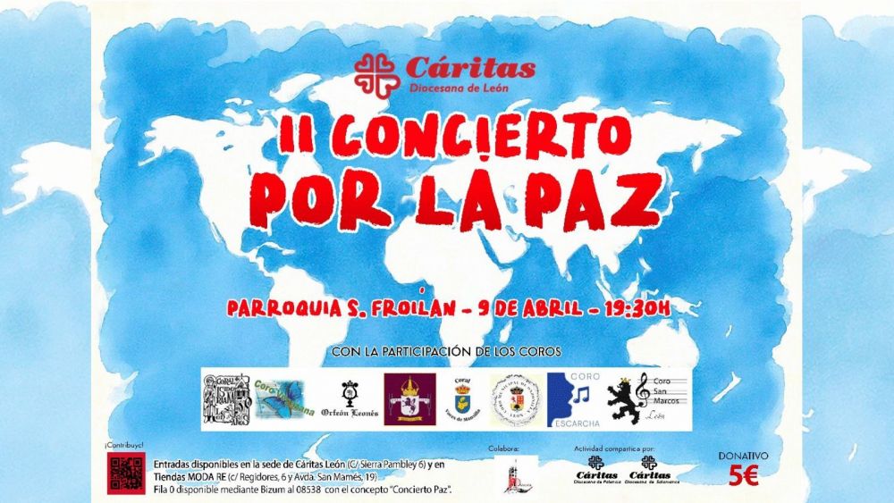 Cáritas Diocesana de León presenta el II Concierto por la Paz, una iniciativa solidaria que tendrá lugar el jueves 9 de abril, a las 19:30 horas, en la Iglesia de San Froilán, con el objetivo de recaudar fondos destinados a apoyar a personas y familias en situación de vulnerabilidad.