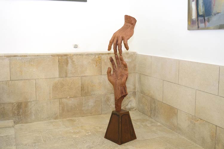 La instalación ‘Cielos ficticios’ del colectivo Entretejid@s (Ana María Campos, Cristina Ibáñez y Sandra González) en la que a través de varias piezas inspiradas en el cielo y lo ficticio crean diversas metáforas alusivas al encierro, la libertad, el espacio abierto y sus márgenes que nos remiten a un pasado muy cercano. Este colectivo recicla materiales que van a acabar en la basura una vez cumplido su objetivo y de este modo tienen una nueva vida relacionada con el arte.Por último, en el apartado de escultura, Cosme Paredes presenta su ‘Aguila’, Carlos Cuenllas ‘Girándula’, Antolín Alvarez con sus ‘Manos de madera de cerezo’, Mariano Gutiérrez con ‘Escalando escorias’, María Antonia de Lora con su ‘Caminante’ y la cabeza en piedra llamada ‘Saramago’. Por último Javier Robles con su escultura ‘Una, dola, tela…’, haciendo referencia a los juegos infantiles.
