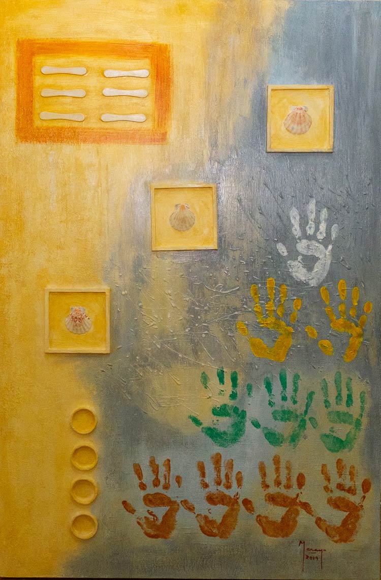 Por un lado se encuentran los cinco pintores: Prado de Fata tiene su exposición ‘Desde Oriente hasta las Médulas’ en la primera sala según se accede a la Fundación. Se trata de pinturas, grabados, dibujos y esculturas que hablan de su relación con el mundo oriental y la belleza plástica de la zona leonesa de las Médulas siempre imbuida por la filosofía zen.