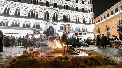 Y se repartió, como invitó Ana, el ferbudo y el cotino, y los refranes y bromas del tradicional mantenedor, Manu Ferrero, el fuego frente al frío de la noche, el vino bien caliente, el alma festiva... y el gochín mirando al tendido.