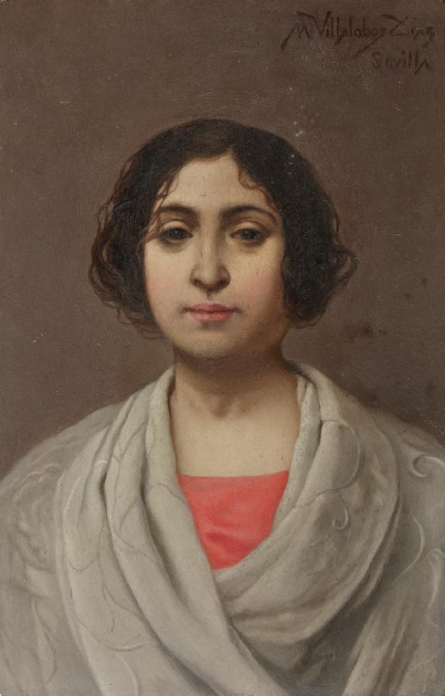 De momento, solo se pueden considerar como un verdadero retrato suyo el realizado por su cuñado Manuel Villalobos Díaz, poco antes de su fallecimiento, y que fue expuesto en la Exposición de Bellas Artes que se celebró en Sevilla en la primavera de 1912 (apenas un año después de su fallecimiento) y del que se habla en el ‘Diario de Córdoba’, diario en el que ella había participado asiduamente. En el comentario que se realiza del mismo no solo se pone de manifiesto y alaba la pericia del artista sino que a través de su análisis se puede observar la profunda estima en la que se tenía a su protagonista, tal como puede deducirse de las palabras de quien firma la crónica: «El autor de dicho retrato (...) ha puesto en su obra todos los entusiasmos del artista, toda su inspiración, el profundo cariño que profesaba a la inolvidable escritora. La corrección del dibujo, la justeza de color del retrato de Olimpia Cobos son tan admirables como su exacto parecido (...) Cuantos se fijen en este lienzo apreciarán, no solo que es el retrato de una mujer hermosa, sino de una mujer buena y de una mujer de talento, lo cual constituye el mérito principal de la obra artística». Que sean su imagen y sus palabras rescatadas de la prensa del momento las que nos queden de referencia para acercarnos a otra mujer que nos dejó una importante aportación al pensamiento femenino del momento, al más adelantado, a aquel que creía en la igualdad de derechos y posibilidades de las mujeres frente a los hombres, también en el campo intelectual.