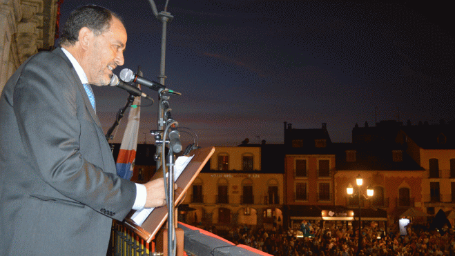 Antonio Ovalle aprovechó el discurso para recordar su infancia en San Juan de la Mata «cuando subíamos a las eras para ver en el horizonte los fuegos artificiales de Ponferrada; cuando venía de fiesta a esta ciudad, a casa de mis tíos y cuándo descubrí, con mis primos, los gigantes y cabezudos y piloté por primera vez los coches de choque».
