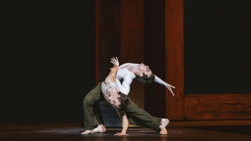 Como sucede con ‘Jewels’, de Balanchine, las partes de este tríptico son muy diferentes tanto en su escenografía, su estilo visual y hasta su enfoque coreográfico. La primera, ‘I Now, I Then’, adapta ‘La señora Dalloway’ (1925). El argumento relata las historias paralelas de Clarissa, una mujer de la alta sociedad inglesa que prepara una gran fiesta, y de Septimus, veterano de la I Guerra Mundial con estrés postraumático. La acción se desarrolla a lo largo de un día. El ballet no profundiza en su tono de sátira social, pero sí alude a la represión sexual y a la nostalgia por el paso del tiempo. Al comienzo, oímos la voz real de la propia Woolf, en la única grabación que se conserva. Eso da pie a McGregor a entrelazar pasajes de la novela con otros de la biografía de la escritora, que convirtió en tema de ficción su propia enfermedad mental.