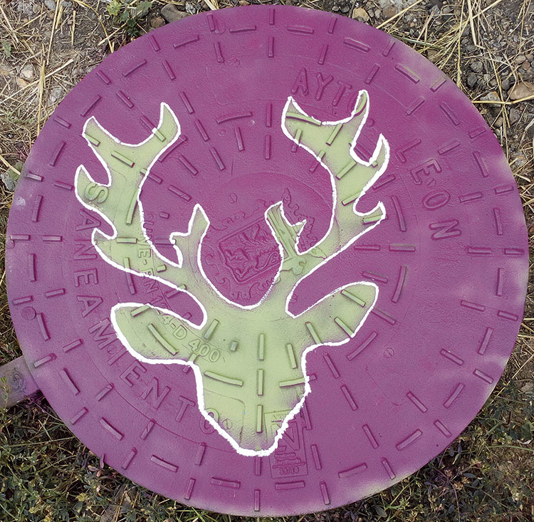 Y se pusieron a trabajar. «Primero empezamos a hacerlo en vivo, por así decirlo, trabajábamos sobre las propias tapas de las alcantarillas, tenías la ventaja de que no necesitabas levantarlas pero era un engorro trabajar así, en la calle, con tráfico, con gente, y en algunas de estas se notan las prisas y el estrés. Después ya nos permitieron llevar las chapas a Espacio Vías y trabajamos mucho más tranquilos, con más libertad y posibilidades».