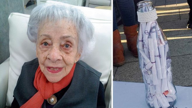 Le hablaron del Día de la Poesía, la invitaron a participar de alguna manera y la buena mujer copió de su puño y letra uno de ellos para que lo sumaran al Día. «Lo introdujimos en la botella, con otros muchos, para leer al año que viene (su poema se distingue bien entre todos pues lleva un lazo rojo)», explican desde el Ágora.