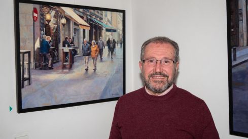 Por su parte Nemesio Balsera presenta cuatro obras: dos de Madrid y dos leonesas, que se venden muy bien. Comenta: «He prometido pintar más cosas de esta ciudad que da mucho juego y lo haré, porque lo piden mucho». De hecho ya ha paseado estos días por la ciudad para buscar entre la lluvia imágenes interesantes de esas que se pueden ver en sus obras en las que las luces del atardecer y los reflejos del agua de estos días de lluvia dan esa luz que tanto le gusta y así lo refleja: «Esta tarde he dado un paseo por aquí y creo que he hecho por lo menos doscientas fotos de localizaciones, aprovechando que el suelo está tan bonito, brillante a partir de la lluvia de esos últimos días». Sin embargo, busca en la noche esa hora mágica que tanto le atrae como nos aclara: «Por la noche también porque me gusta también pintar en esa hora mágica en la que se está yendo el sol y se encienden las luces, los escaparates están iluminados y hay una luz tremenda».