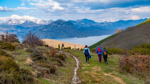 Siempre es posible dejar el camino y tomar los numerosos senderos ya que no hay demasiado matorral en la parte de subida. El camino llega hasta una collada desde donde es posible tener momentos en los que se puede ver el pantano y las montañas del Norte, sin embargo es necesario bajar algo para encontrar lugares sin arbolado que permitan ver las montañas como el Susarón o los picos de Mampodre, la peña de Armada y demás montañas situadas al Norte del pantano.