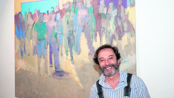 En la última parte regresa a la pintura y tiene que ver con los viajes en trenes vacíos durante la pandemia que iban tres en cada vagón, y relata: “yo iba pintando en mis cuadernos de dibujo, empecé a dibujar cosas y parte de esos dibujos los he trasladadoa cuadros”. En esta serie hay escenas urbanas con personajes sin rostro y entre elloshay enanos, los enanos del caos, seres pequeños que están gritando, seres de un coloro de otro, intentando levarnos a un lugar o a otro a esa especie de agujeros queempiezan a aparecer en el suelo que está como succionándolos.Sobre el título de la exposición comenta: “Barajaba dos títulos, uno era “Los años feroces”, pero luego me quedé con el de “perros, casas y profetas”, primero el temade los perros por la propia pandemia, para salir había que tener un perro, de hecho yotengo un perro que es de la pandemia, los perros se han convertido en un sinónimo dela soledad, las casas por estar encerrados en ellas, también por la carestía actual de lascasas, en Madrid la casa es el drama, y por último profetas porque ahora todo elmundo nos está anunciando el fin del mundo, el apocalipsis, y es un título que recogemuy bien de lo que muchas de estas piezas hablan”.Sobre sus exposiciones en nuestra ciudad nos cuenta: “A mi León siempre me acoge muy bien, me dicen “el pintor berciano”, en Salamanca soy el pintor leonés. En León me siento bien acogido, llevo años trabajando con Ármaga y me encuentro muy bien,me siento como en casa y espero que la gente conecte con lo que he querido decir yque, más que eso, se vea reflejada en mis cuadros. Yo como pintor no hablo de mí,hablo de lo que nos pasa a todos, intento que la gente se vea reflejada en mis cuadrosy que digan, yo me reconozco aquí”.