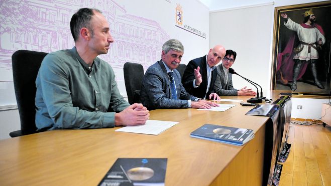 El alcalde de León, José Antonio Diez, junto al rector de la Universidad de León, Juan Francisco García Marín; el director de actividades culturales de la ULE, César Ordóñez; y el artista Richard Le Manz han presentado esta muestra multidisciplinar que abarca exposiciones, vídeos, charlas, cine y pensamientos críticos.