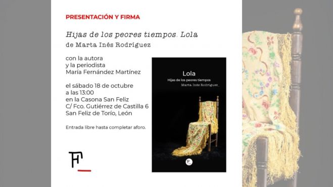 La escritora leonesa Marta Inés Rodríguez presenta este sábado 18 de octubre a las 13:00 horas en Factor. Espacio San Feliz (San Feliz de Torío) su nueva novela, Lola, con la que pone punto final a la trilogía “Hijas de los peores tiempos”, una saga que recorre algunos de los episodios más convulsos del siglo XX a través de las vidas de mujeres marcadas por la guerra y la supervivencia.