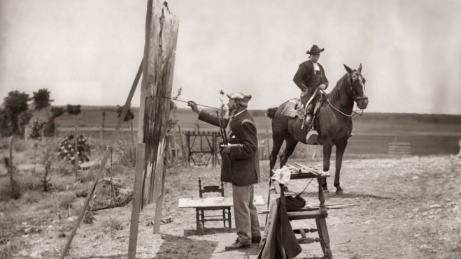 Representar lo rural muchas veces, frente a lo pujante que fue lo urbano, o embarcarse en esa ambiciosa misión encargada por la Hispanic Society de Nueva York para retratar a las gentes de España representando oficios, vestidos populares, folclore y rincones provincianos que han ido desapareciendo, le fue arrastrando hacia atrás en el tiempo y llevando su genio el estatus antiguo de pintor oficial acabando por desmontarle de la vanguardia internacional que podía haber liderado para descender al localismo. Y todo ello en un momento en el que se producía la mayor crisis habida en el género de la pintura, cuando ya existía la fotografía, cuando él mismo la conocía muy bien porque su suegro fue un importante fotógrafo, un pintor que se había pasado a la fotografía.